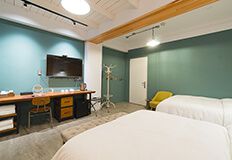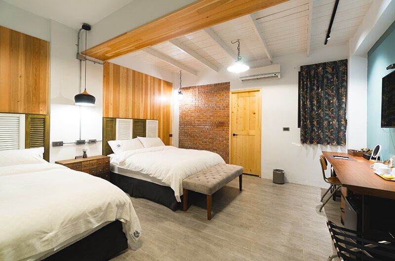 客房規格:空間約14坪、標準獨立筒乳膠雙人床墊×2、進口磁磚地板