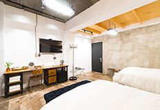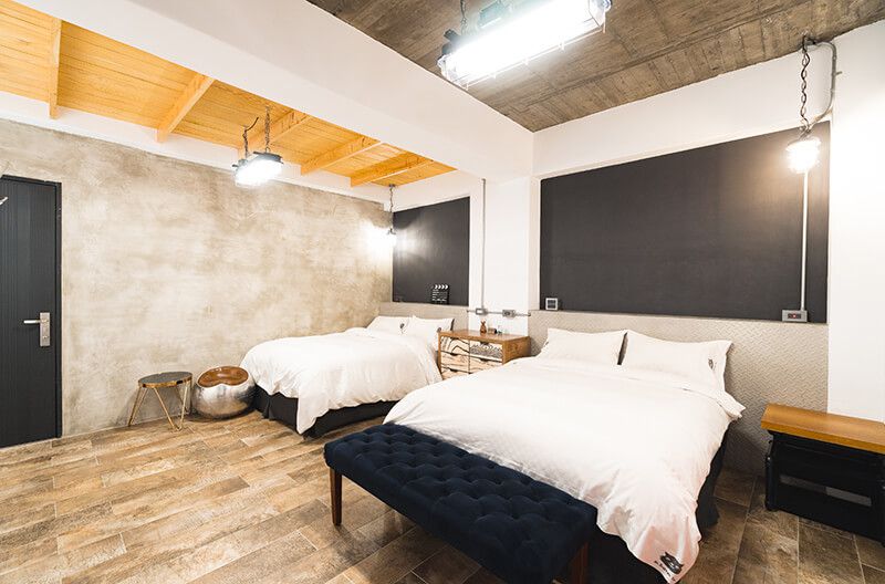 客房規格:空間約14坪、標準獨立筒乳膠雙人床墊×2、進口磁磚地板